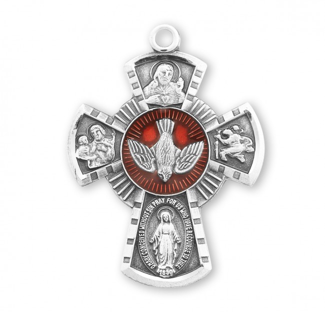 Four-way combination Medal, Miraculous-Scapular-Saint Christopher-Saint Joseph medals.