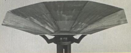 A 36-inch diameter ring is held up at an angle by arms that rise fountain-style from a solid base.