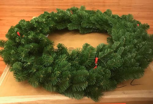 If the ribbons have come undone for some reason, search for the wires in the wreath, there should be 4 total.