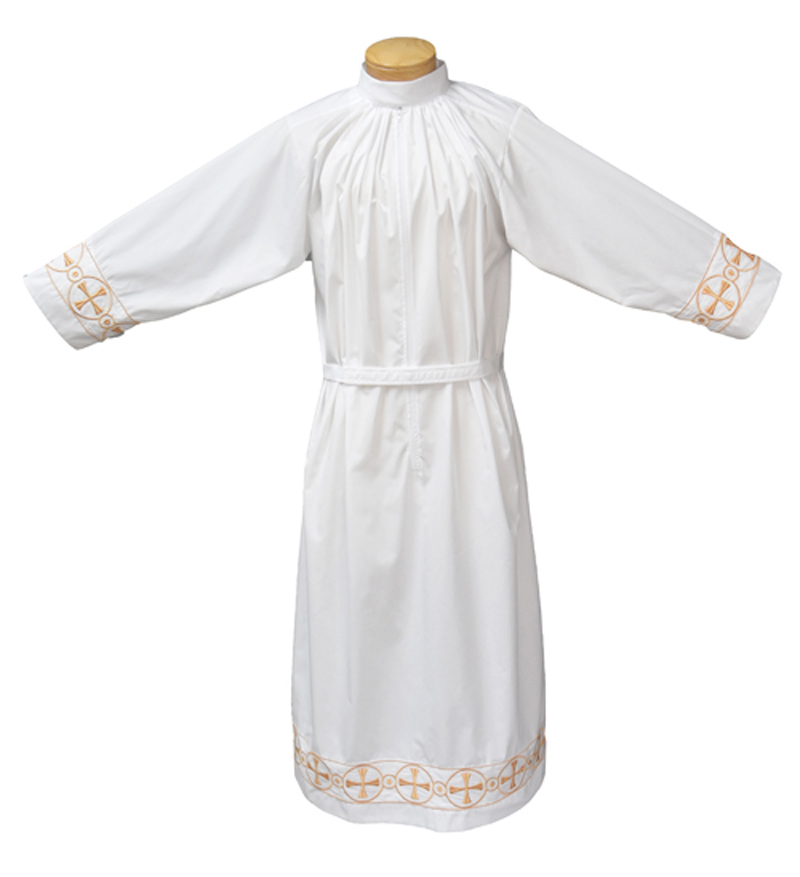 Has circle in cross pattern banding, stand-up adjustable collar and belt to assure proper fit.