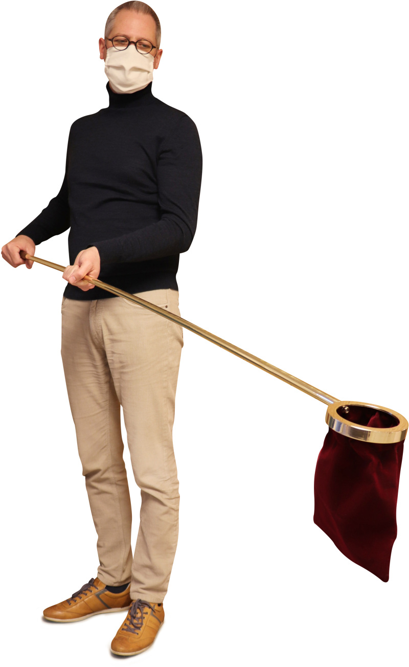 Ideal to carry out the collection in a safe way at the start of the celebrations. Brass article, polished and varnished, no maintenance.