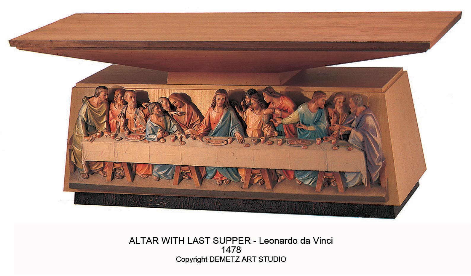Available hand carved in Linden wood with colored Last Supper.