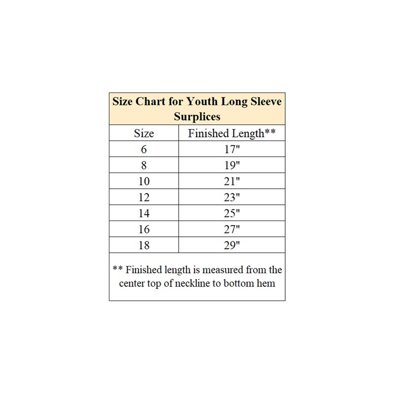 Square Yoke Style Surplice is made of 65% polyester/35% cotton.