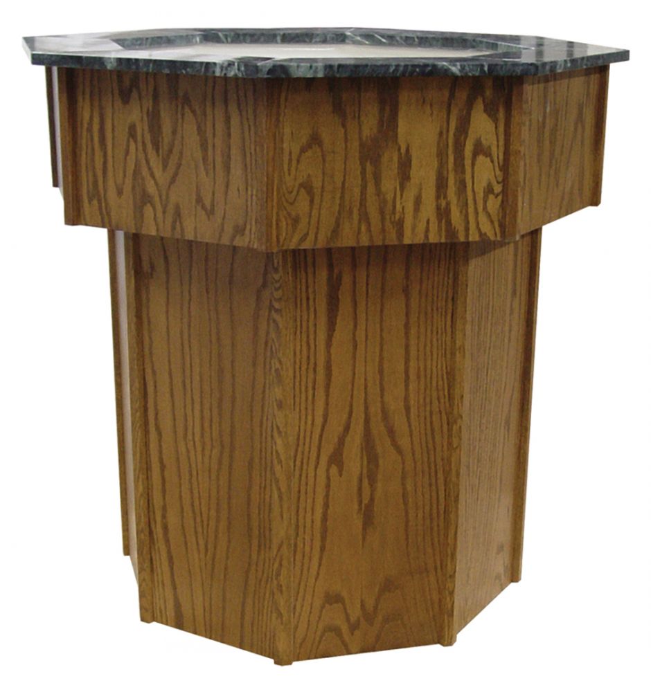 This font has an octagonal shape. Has white fiberglass interior that measures 28″ x 28″, 8″D.