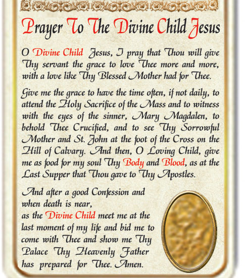 Prayer to the Diine Child, Sold 12 per pack. Made in Italy.