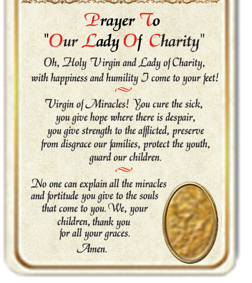 Prayer to Our Lady of Charity, Sold 12 per pack. Made in Italy.