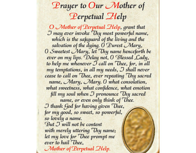 Prayer to Our Mother of Perpetual Help, Sold 12 per pack. Made in Italy.
