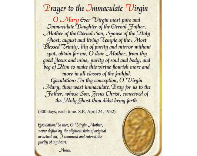 Prayer to the Immaculate Virgin, Sold 12 per pack. Made in Italy.
