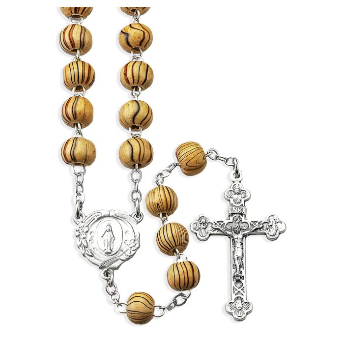 8mm Natural Grained Round Wood Bead Rosary with Deluxe Silver Oxidized Crucifix and Center. 20″ Comes in Deluxe Velvet Box.