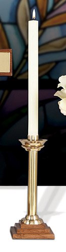 The Altar Candlesticks from McKay Church Goods are made of solid, high-polished brass with hardwood base.