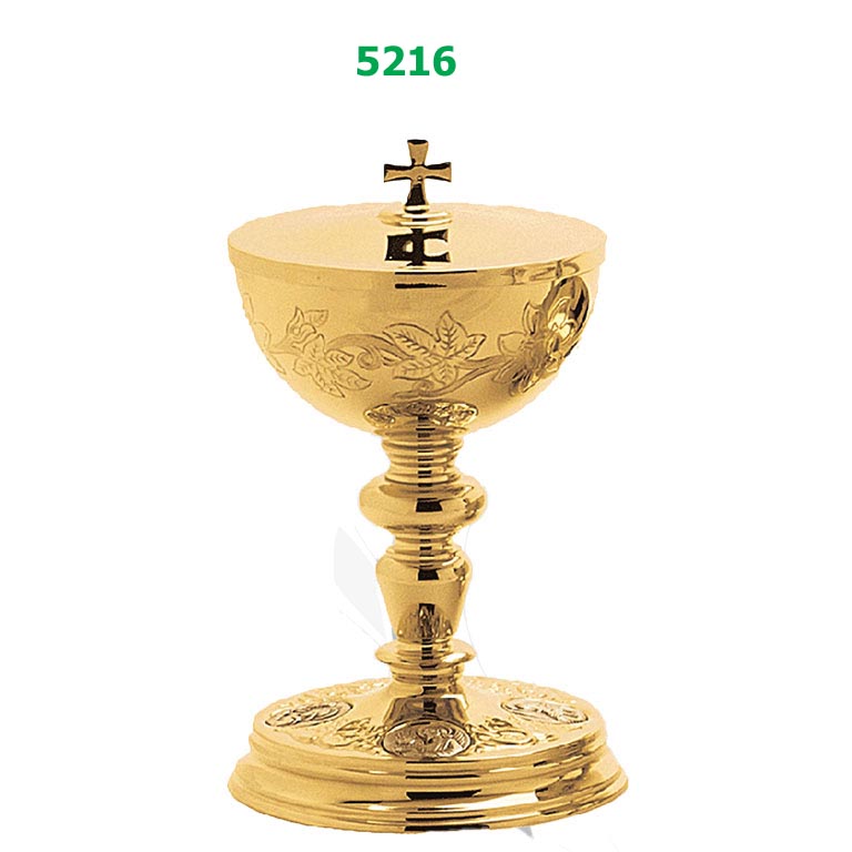Matching #5216 Ciborium that is 8″H. with 4-5/8″ cup. Holds 250 hosts.