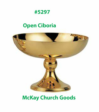 #5297-01 (not shown) Large Open Ciboria is 5″H., 8-1/8″ Cup, holds approximately 400 hosts.