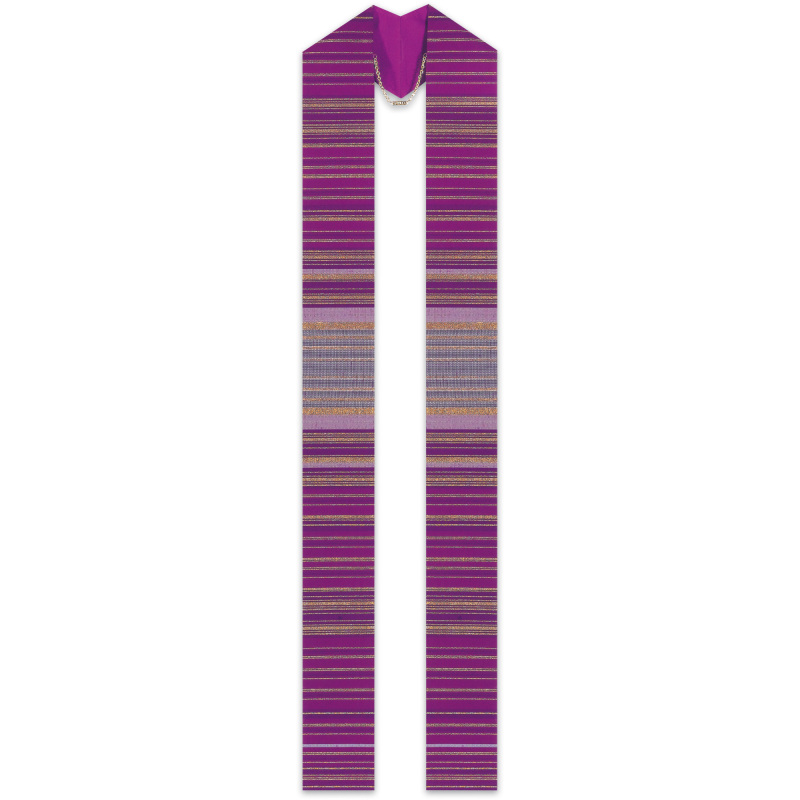 Matching overlay stole (style 25), reversible overlay stole, dalmatic with low stand-up collar 6, reversible deacon stole, unlined cope, and mitre.