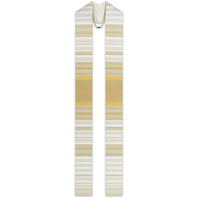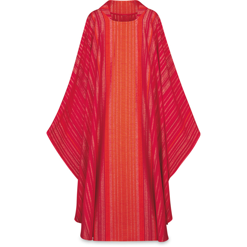 Chasuble in Melchior fabric, with randomly woven gold and color threads. Width 63″, length 53″, inside stole.