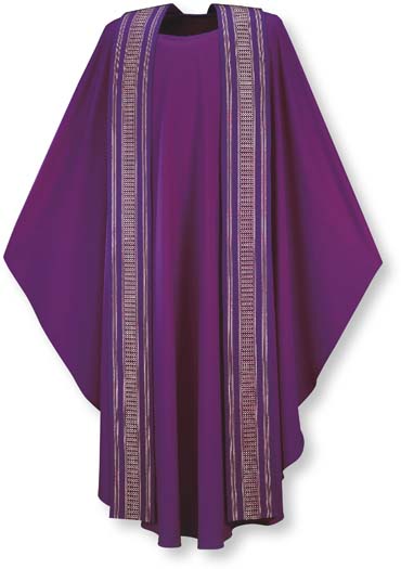 Chasuble with overlay stole, without embroidery. Width 59″(150 cm), length 53″(135 cm); without inside stole.