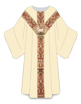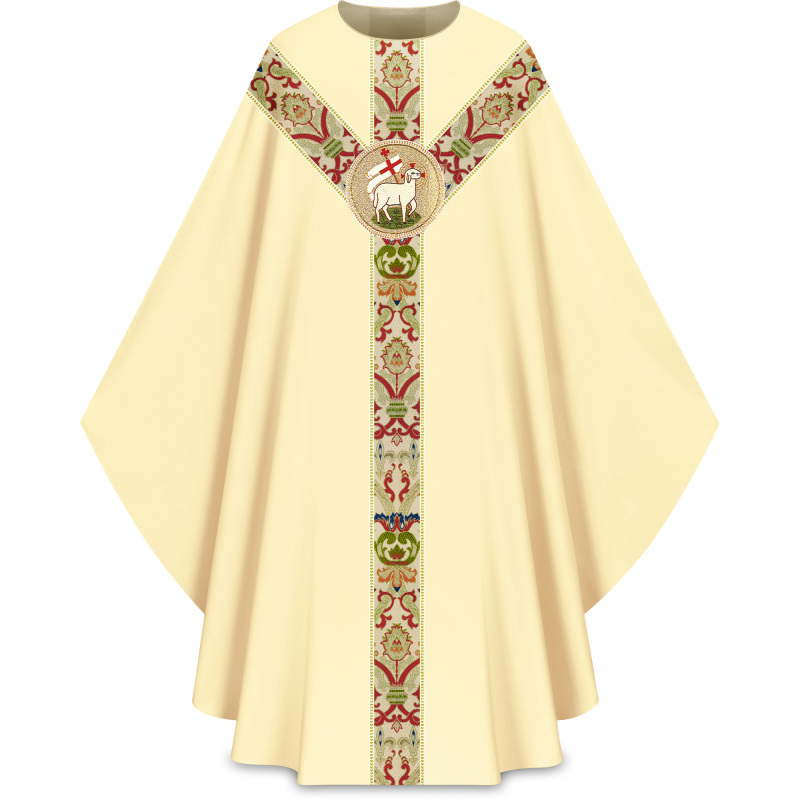 Chasuble in Dupion fabric, 70% man-made fibers and 30% viscose. Width 59” (150 cm), length 49” (125 cm); with inside stole. Plain neckline.