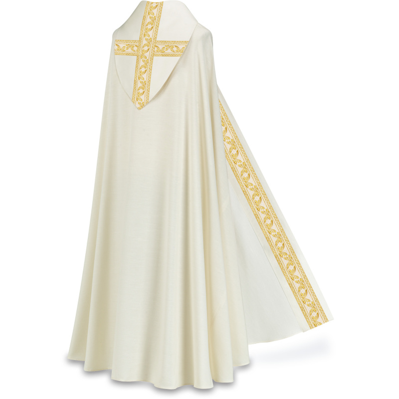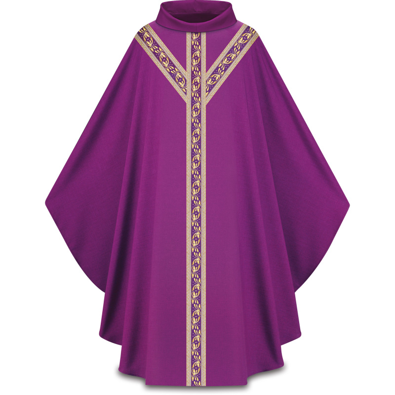 Supplied with inside stole. Matching dalmatic, mitre, cope, stole and deacon stole also available.