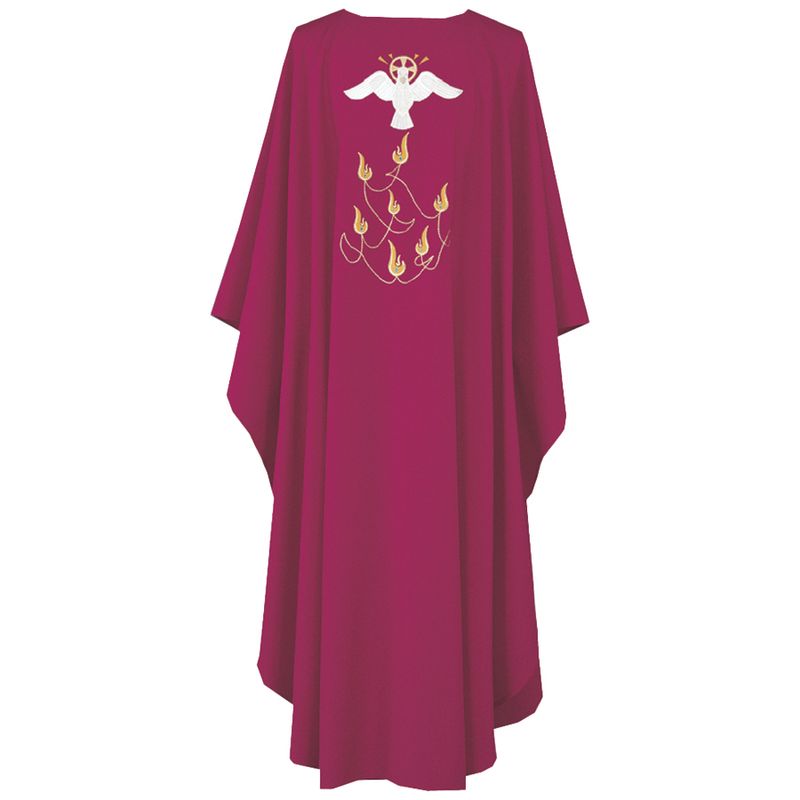 Machine washable, amply cut chasuble, wrinkle resistant polyester.