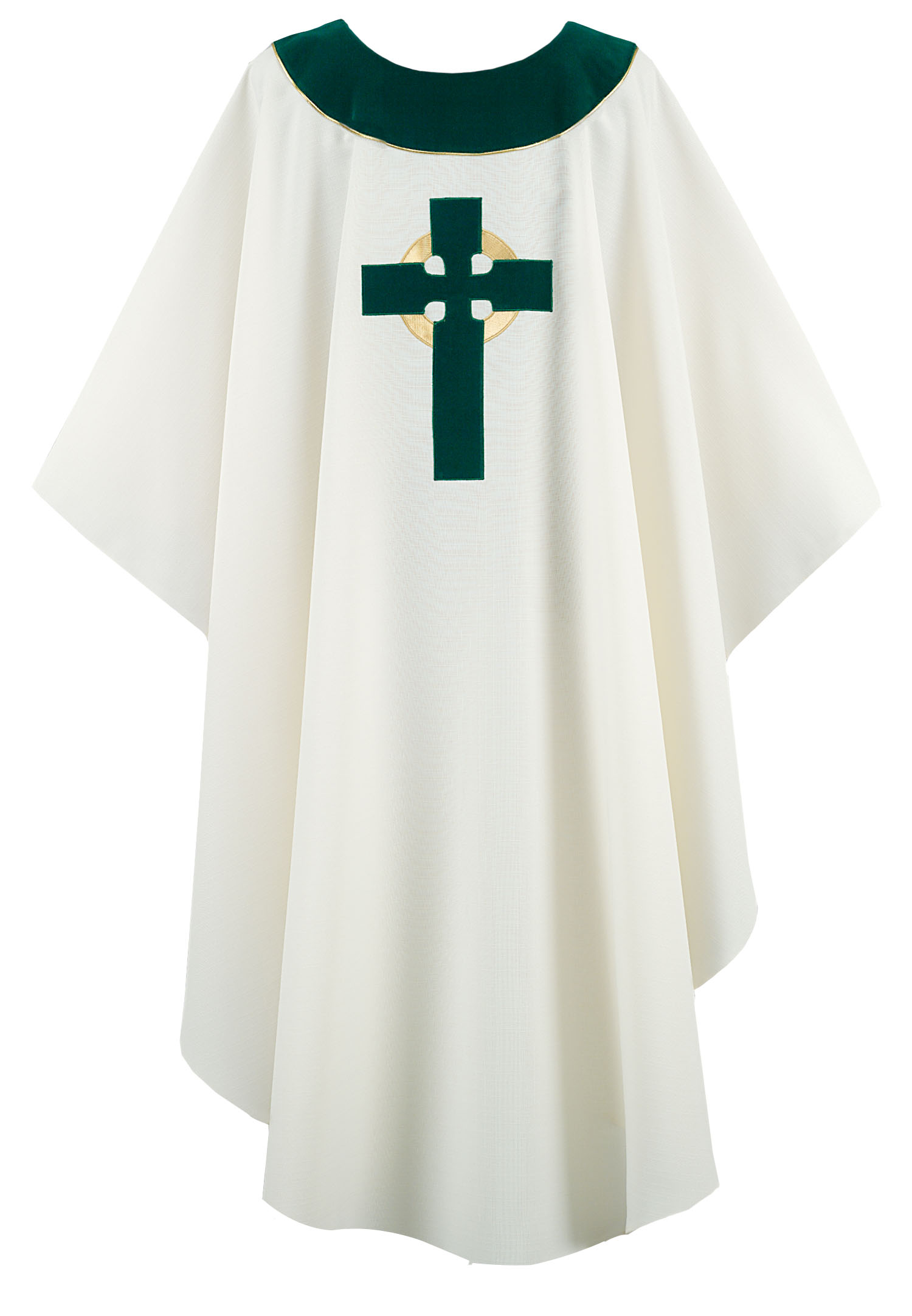 Ample chasubles measure 52″ long x 64″ wide, additional fee.