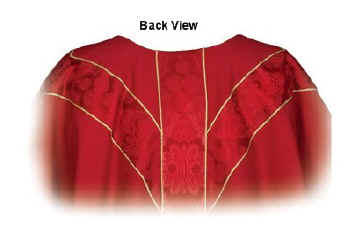 Red St. Andrews Yoke Chasuble features dove and halo design.
