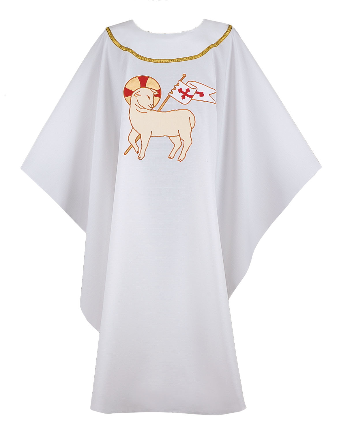 Ample chasubles measure 52″ long x 64″ wide, additional fee.