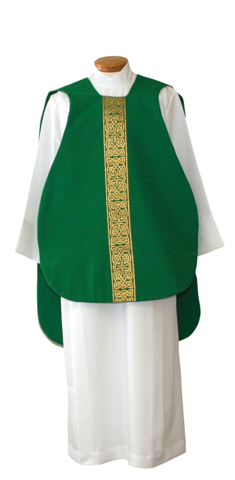 Set includes the Roman Chasuble, Understole, Maniple, Burse and Chalice Veil.