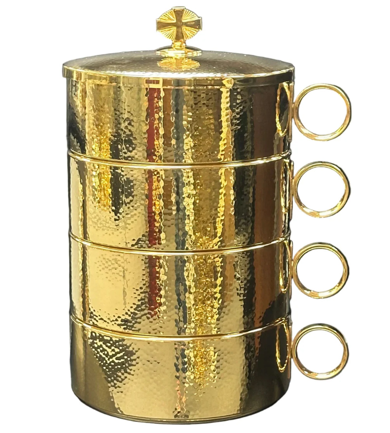 Hammered Finish Brass Gold Stacking Ciboria (4 Ciboria + 1 Cover): 450 HOST CAPACITY.