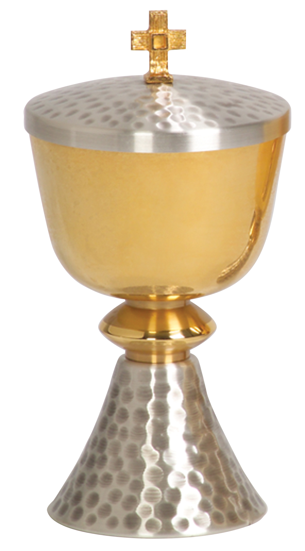 24k gold plated, two-tone bright and satin finish cup, node, and cross.