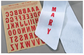 Sheets of 51 assorted letters that are 1″ high. Easily pressed onto scarf. Personalizes the scarf with the individual’s name.