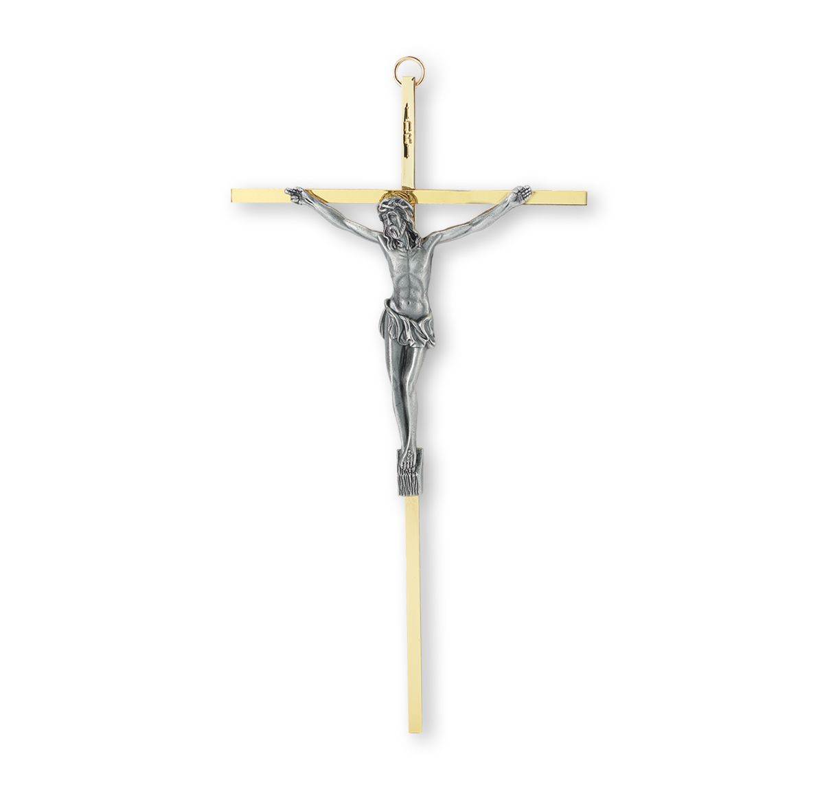 Stamped “INRI”. Brass ring for hanging.