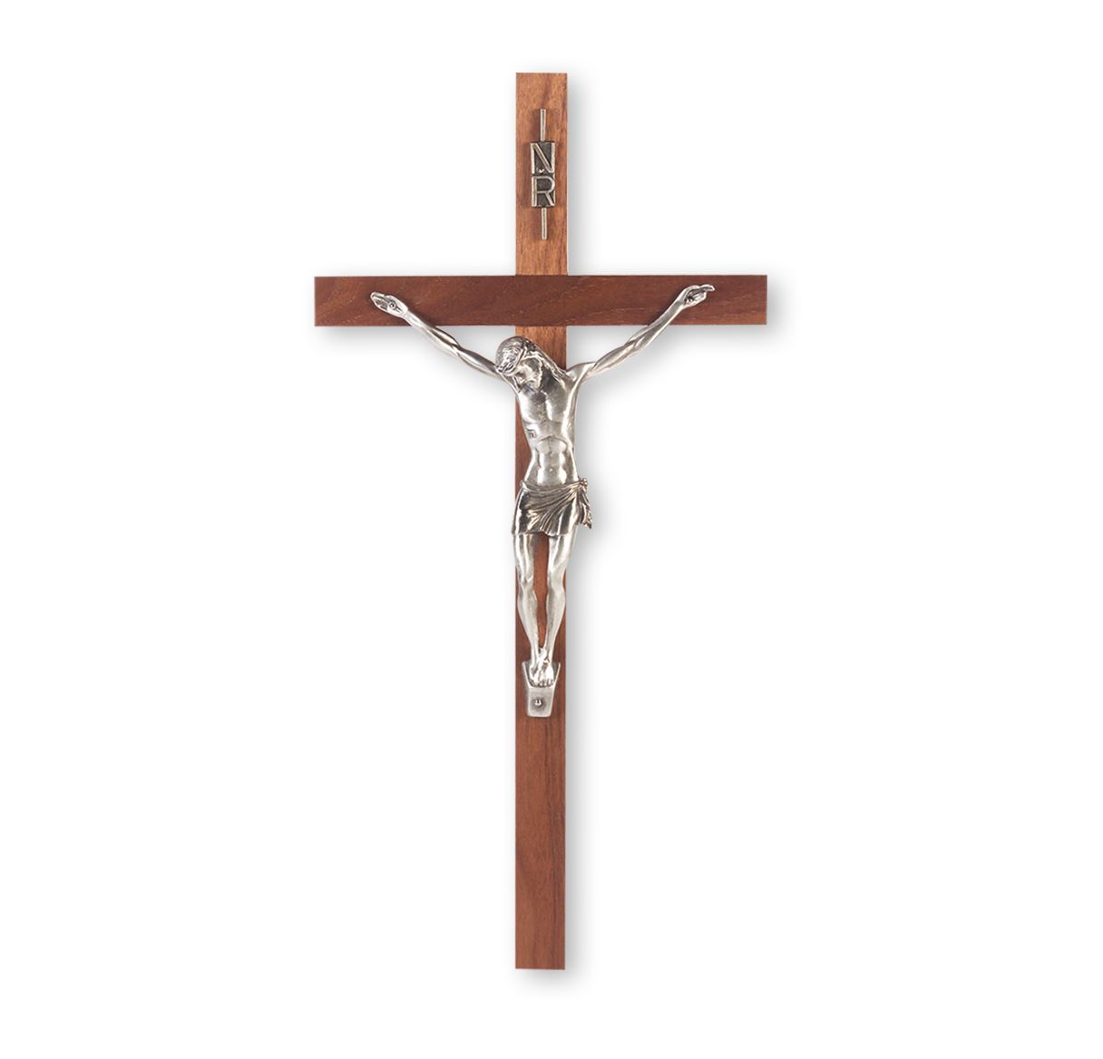 13″ Walnut Wood Crucifix with Fine Pewter Corpus.
