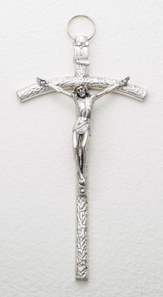 Silver 8″ Crucifix arrives boxed.