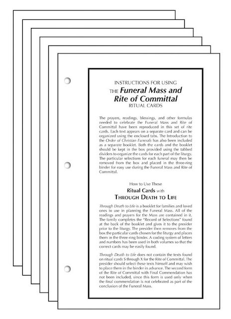 Ideal as an ordination, anniversary, or all-occasion gift for any priest, the Funeral Mass and Rite of Committal Ritual Cards are now updated with the approved texts from the Roman Missal, Third Edition and directly correspond to the new edition of Through Death to Life. Includes the November 2011 revisions from the 3rd Roman Missal.