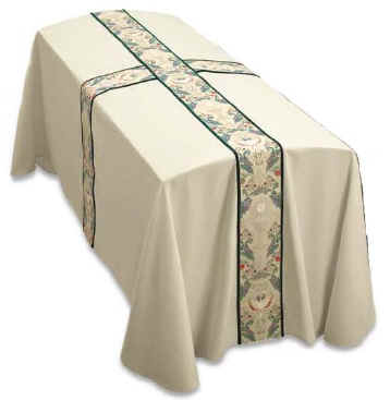 This funeral pall is unlined with rounded corners and is finished with a bias tape hem.