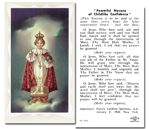 Infant of Prague Prayer on Back.