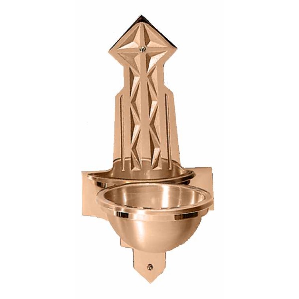 Holy water fonts are made of bronze or brass in high polish or satin finish.