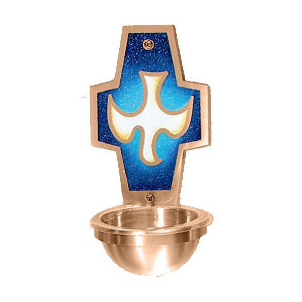 Holy water fonts are made of bronze or brass in satin finish.