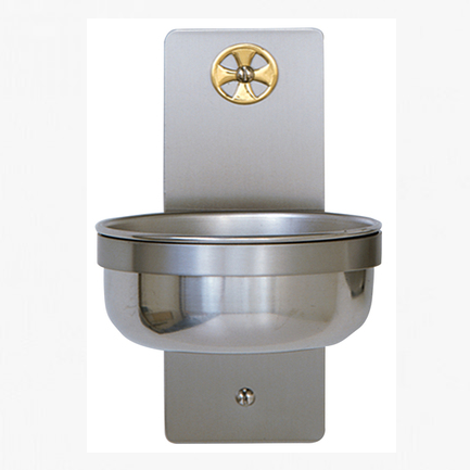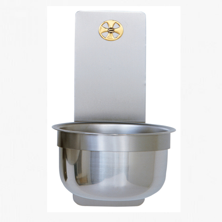 K349-A – Stainless steel with solid brass cross. 3˝ x 9˝ back plate, 5˝ dia. bowl.