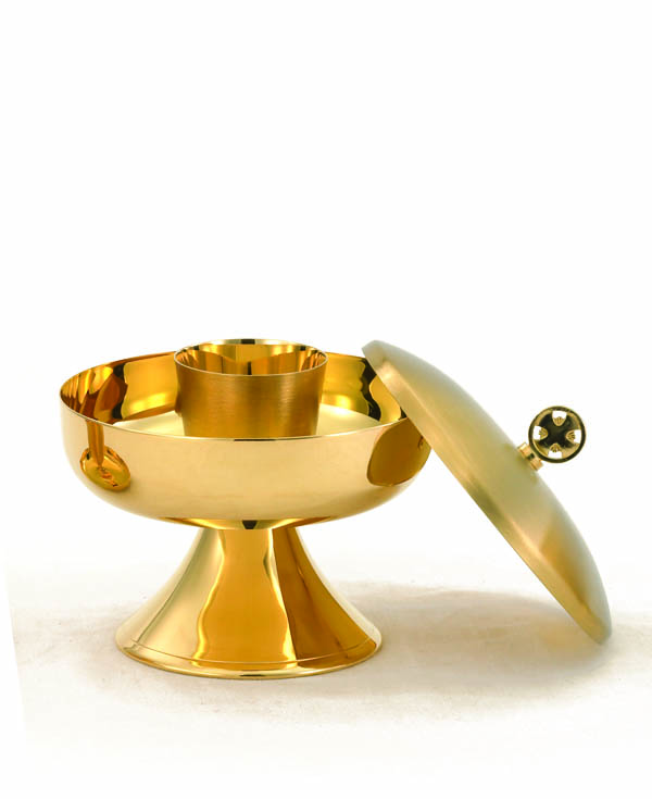 24 KT Gold Plate, Ht. 6″, Diameter 6″, Host 175 Capacity Based on 1-3/8″ Host Size.
