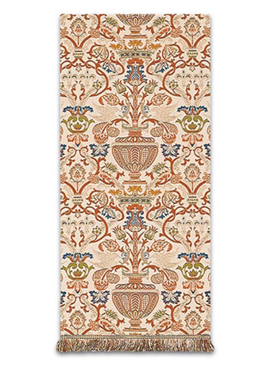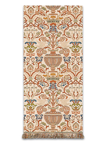 If vestments or paraments are being re-ordered, with previously delivered items, please select the correct color combination of the Regina brocade fabric: white/red, white/green, white/purple or white/blue.