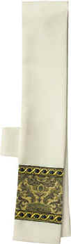 A maniple is a liturgical vestment that when worn properly hangs from the priest’s left arm.