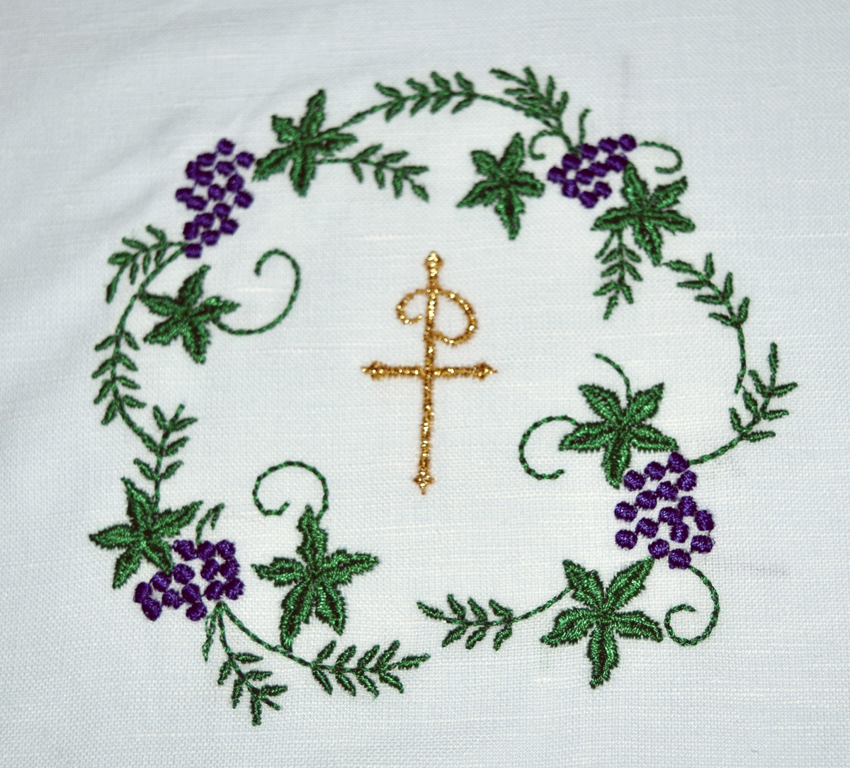 Mass Linens – #3020 Chi Rho, Grapes, Leaves Design, Linen/Cotton