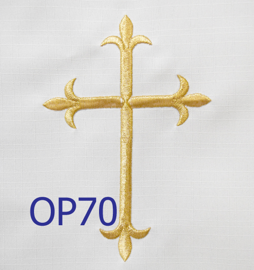 Made in 100% texturized polyester in pure white with embroidery #OP70 as shown on the front.