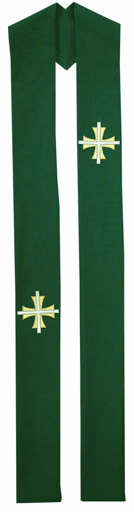 Stole has Thomas crosses and is shown in hunter green. Available in all liturgical colors.