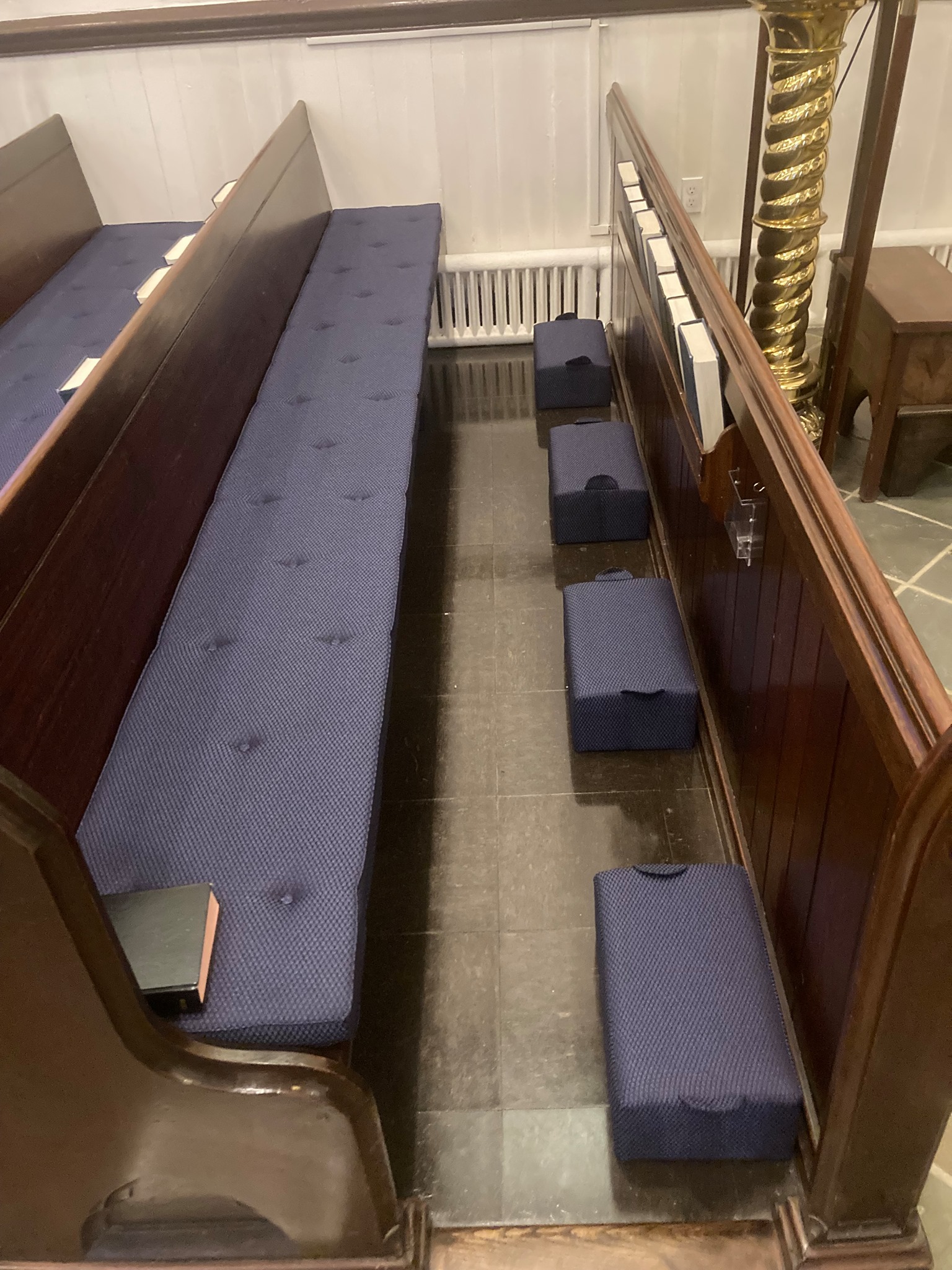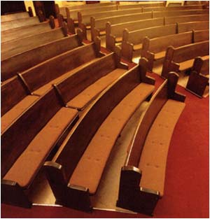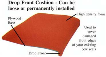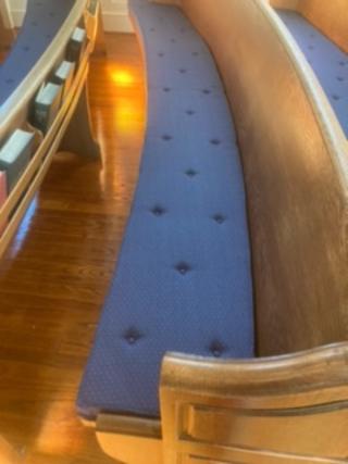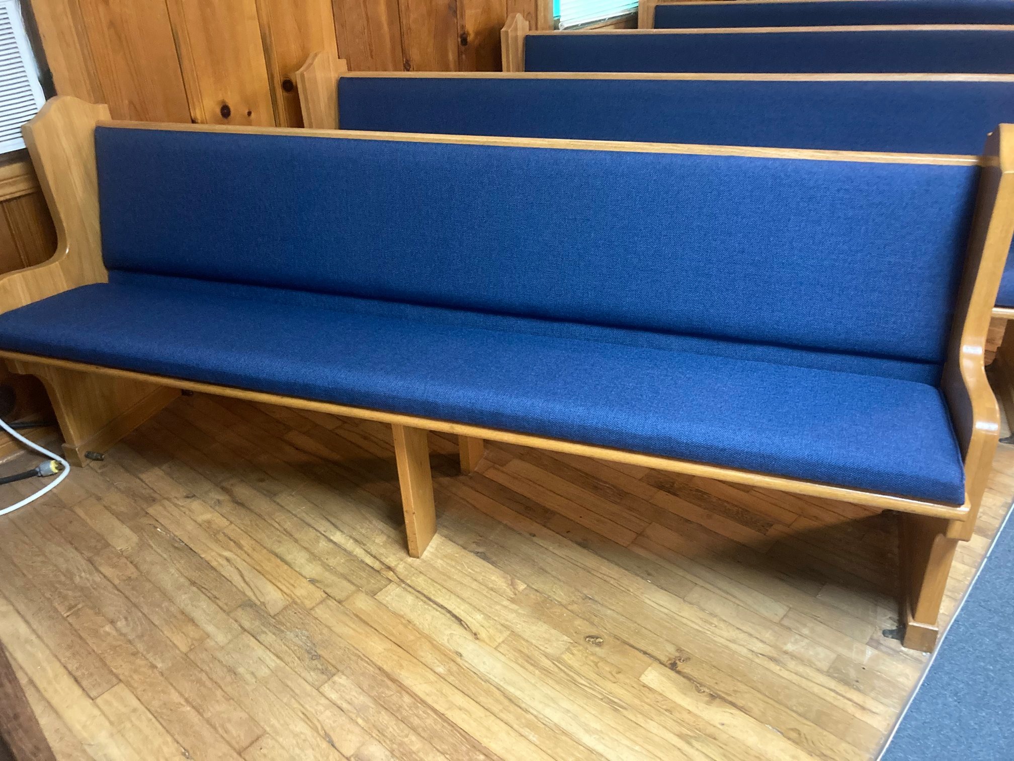 McKay Church Goods has many styles of pew cushions for your church pews. Available in hundreds of fabrics and several styles. Please email us for a quote. Include in your email as much information as possible and a picture of your current pew cushions.