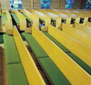 Reversible cushions also available. These reversible pew cushions combine quality workmanship and tailored appearance with the utility of removable zippered coverings.