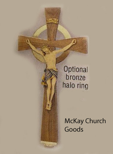 Satin bronze. Feather weight for procession. 9˝ wood Corpus carved.