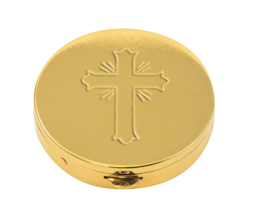 Beautiful gold plated pyx allows you to safely transport the Precious Body of Christ.