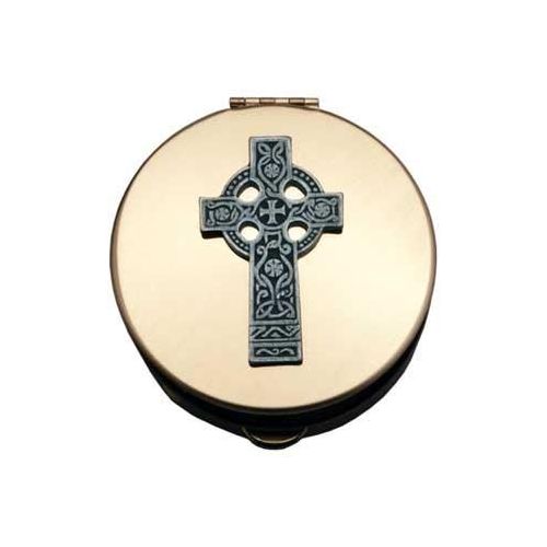 This polished brass pyx has a raised Celtic Cross on the cover.