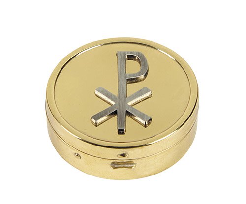 Holds approximately 8 hosts. Material: Brass/Silver Plate.